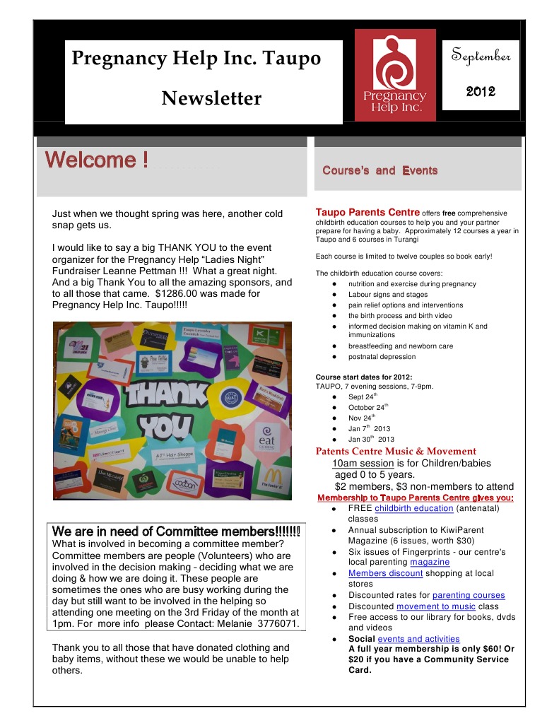 Welcome Pregnancy Help Inc Taupo Newsletter Childbirth Parenting Parenting Help Taupo